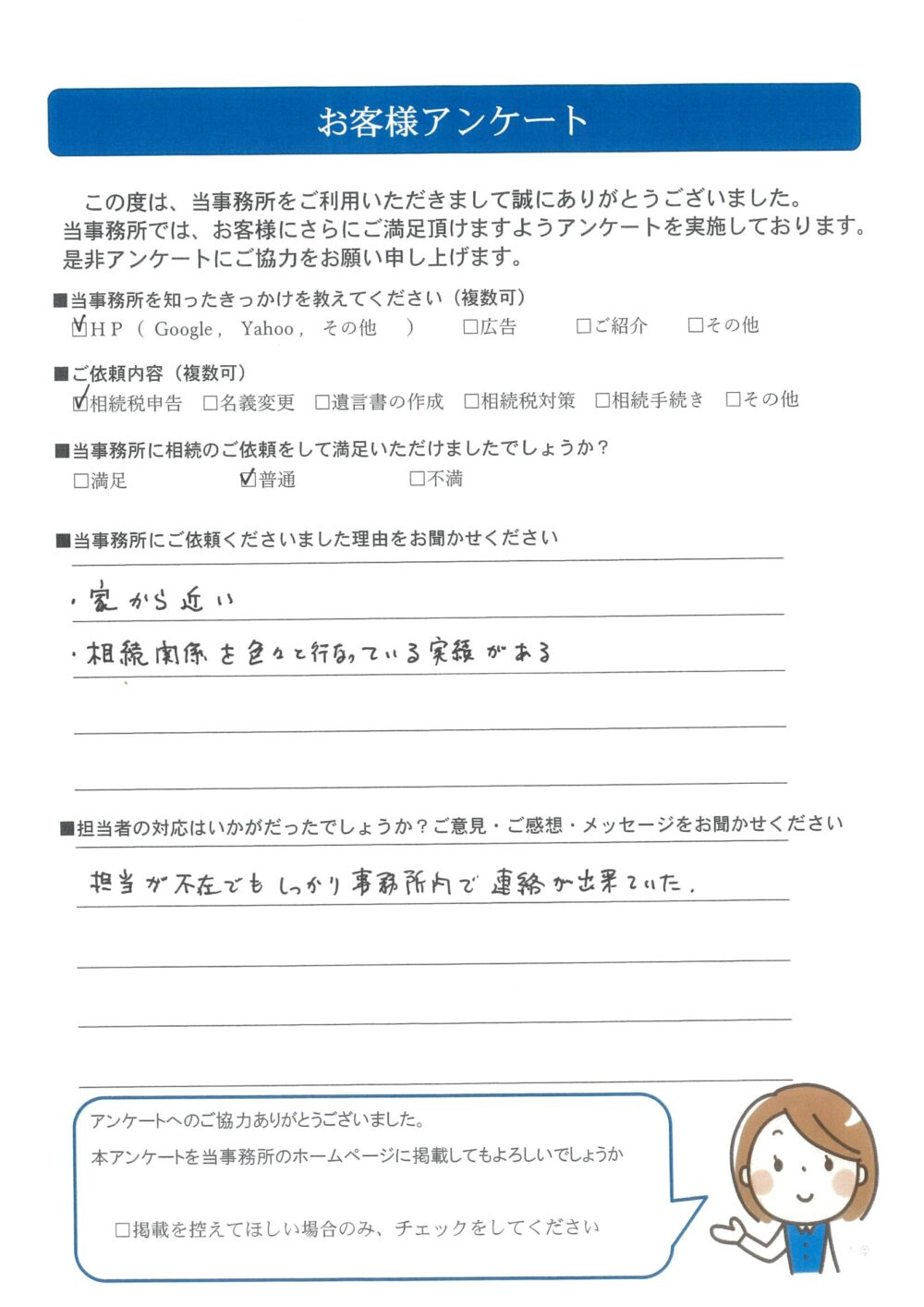 担当が不在でもしっかり事務所内で連絡が出来ていた。